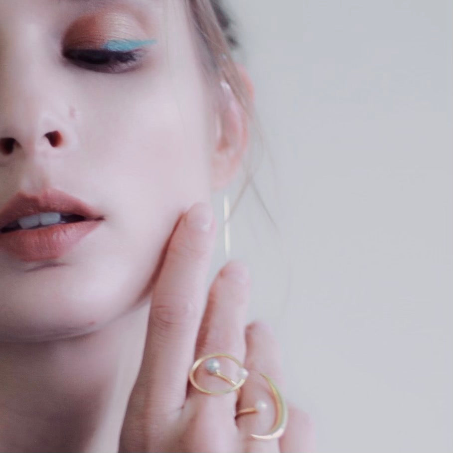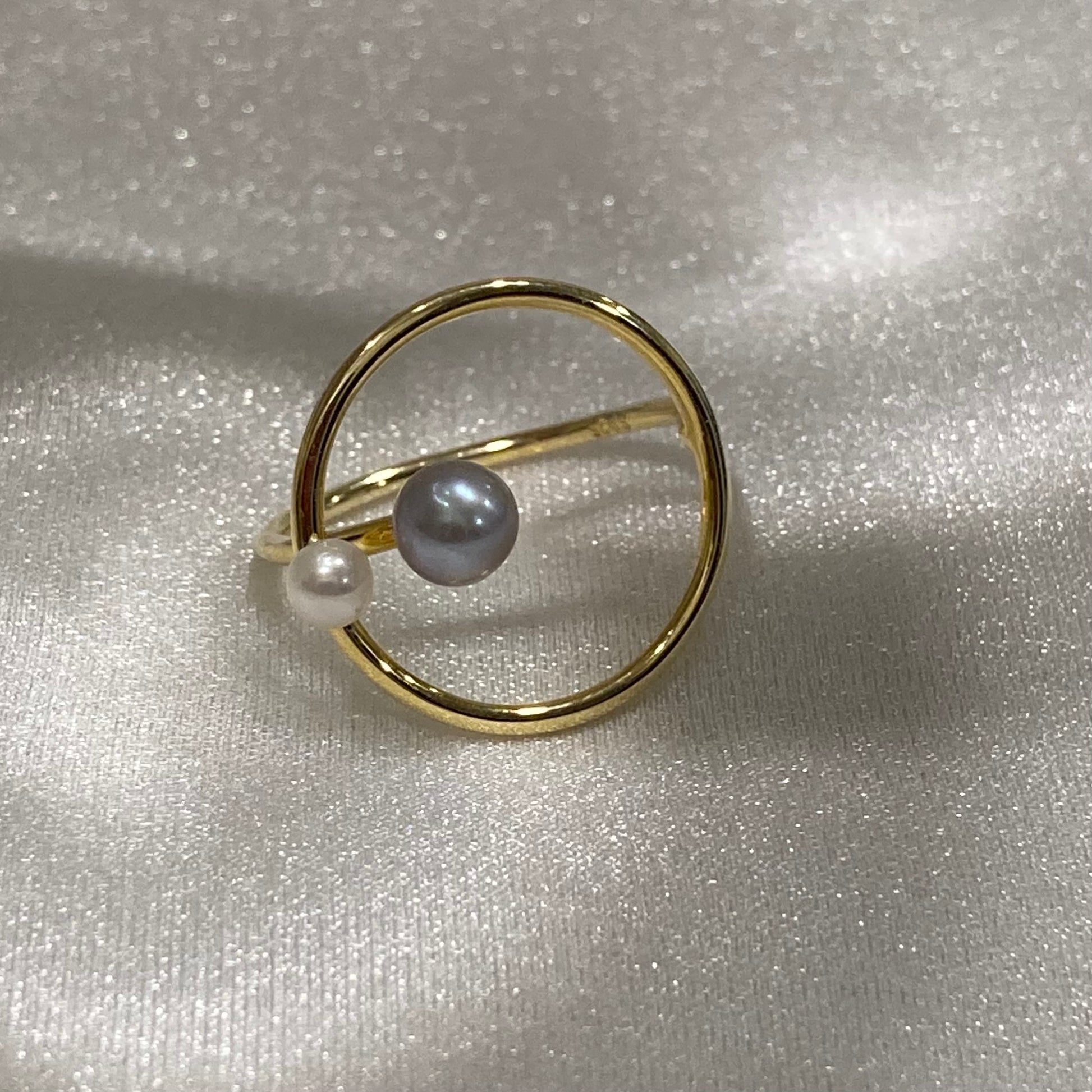 以行星始終守護繞行恆星為靈感,行星守護戒有著極簡幾何的設計。使用近4A級灰色與白色強光淡水珍珠, 兼具個性與珍珠柔和之美。圓圈如軌道般的造形 x 純銀簡約洗鍊, 是款中性雋永百搭的單品。