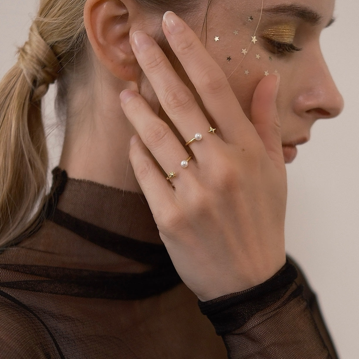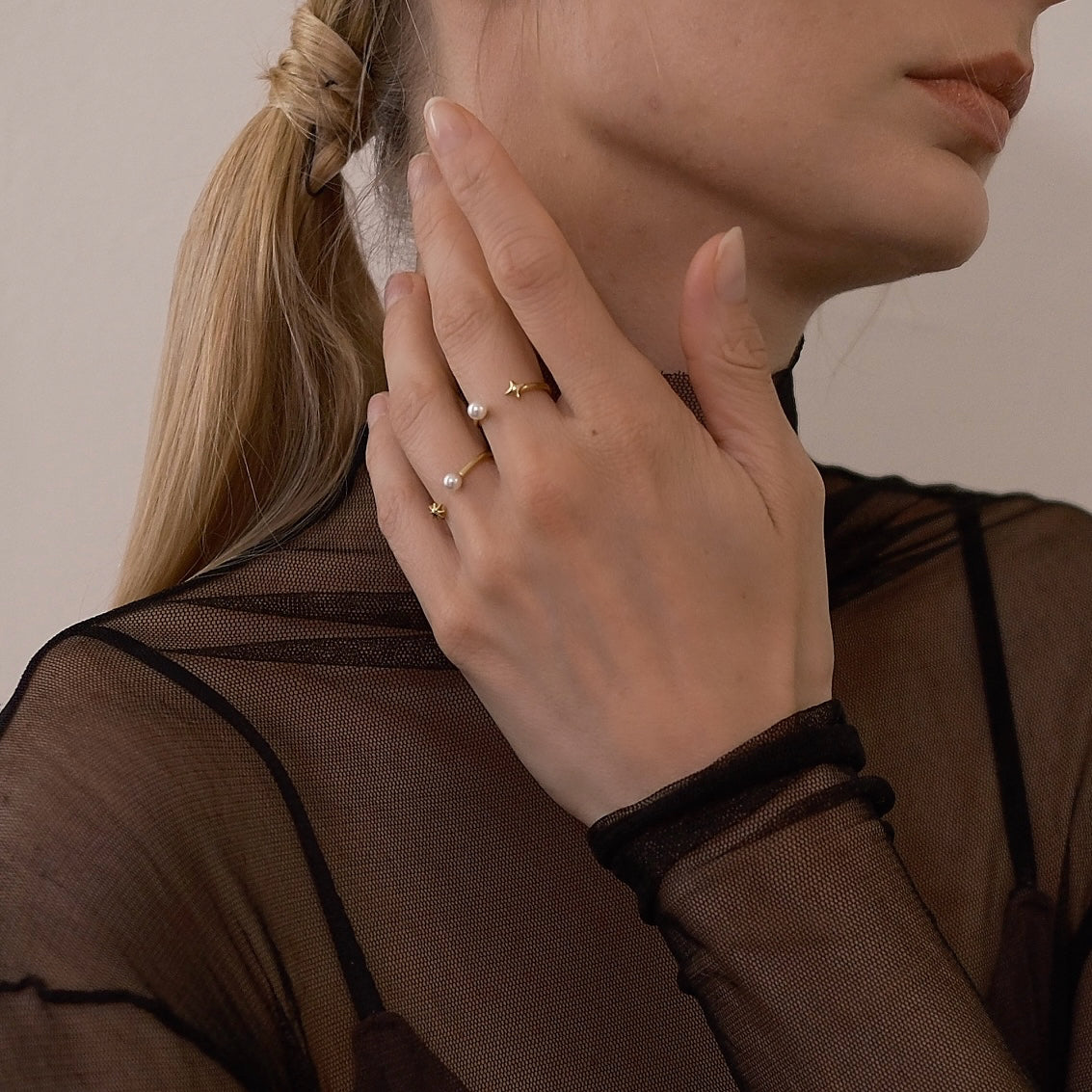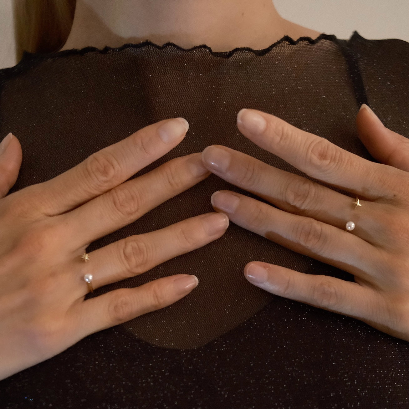 The petite four-point and eight-point star pearl rings