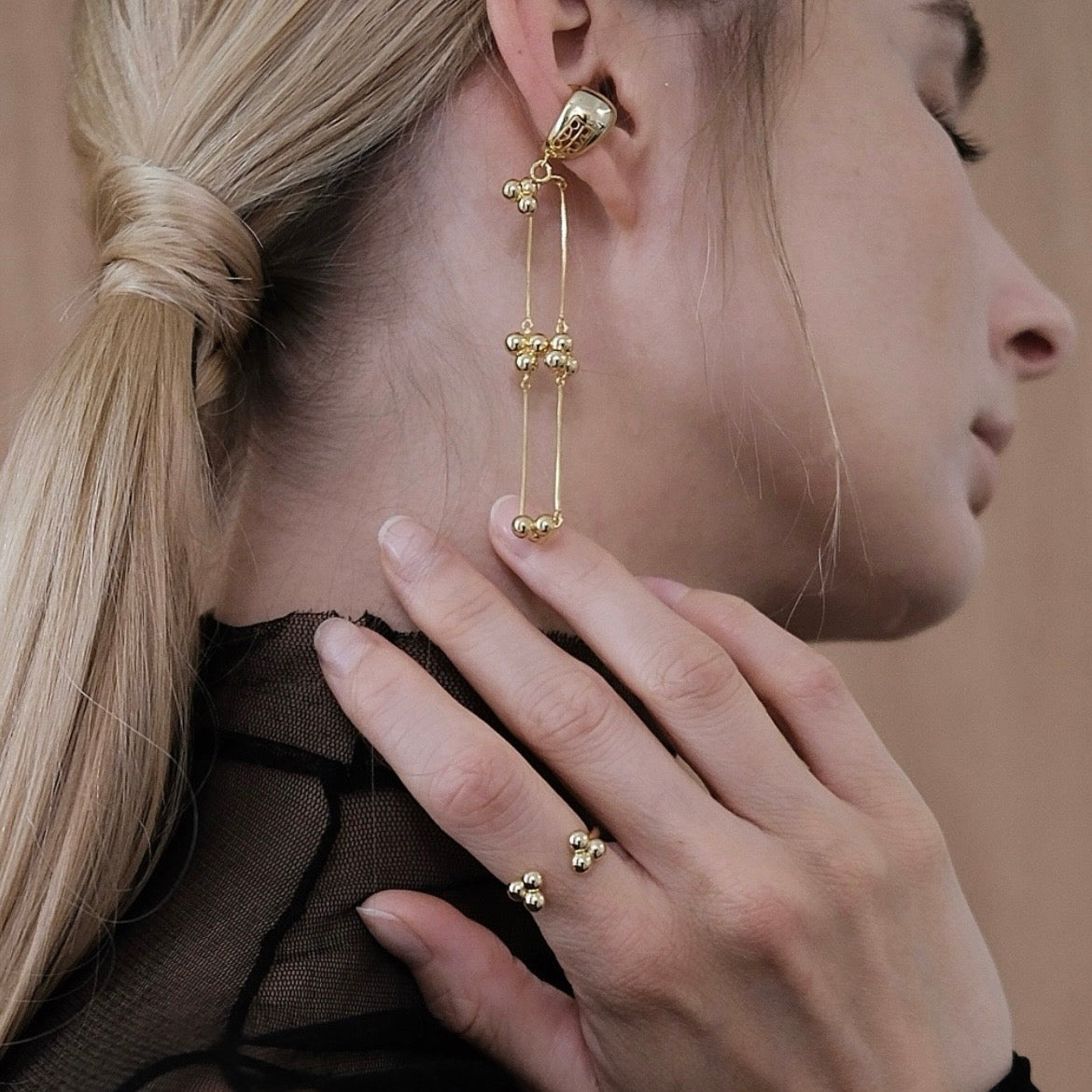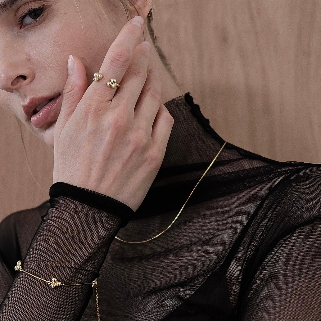 Across the fingers, they form a quiet dialogue and balance.