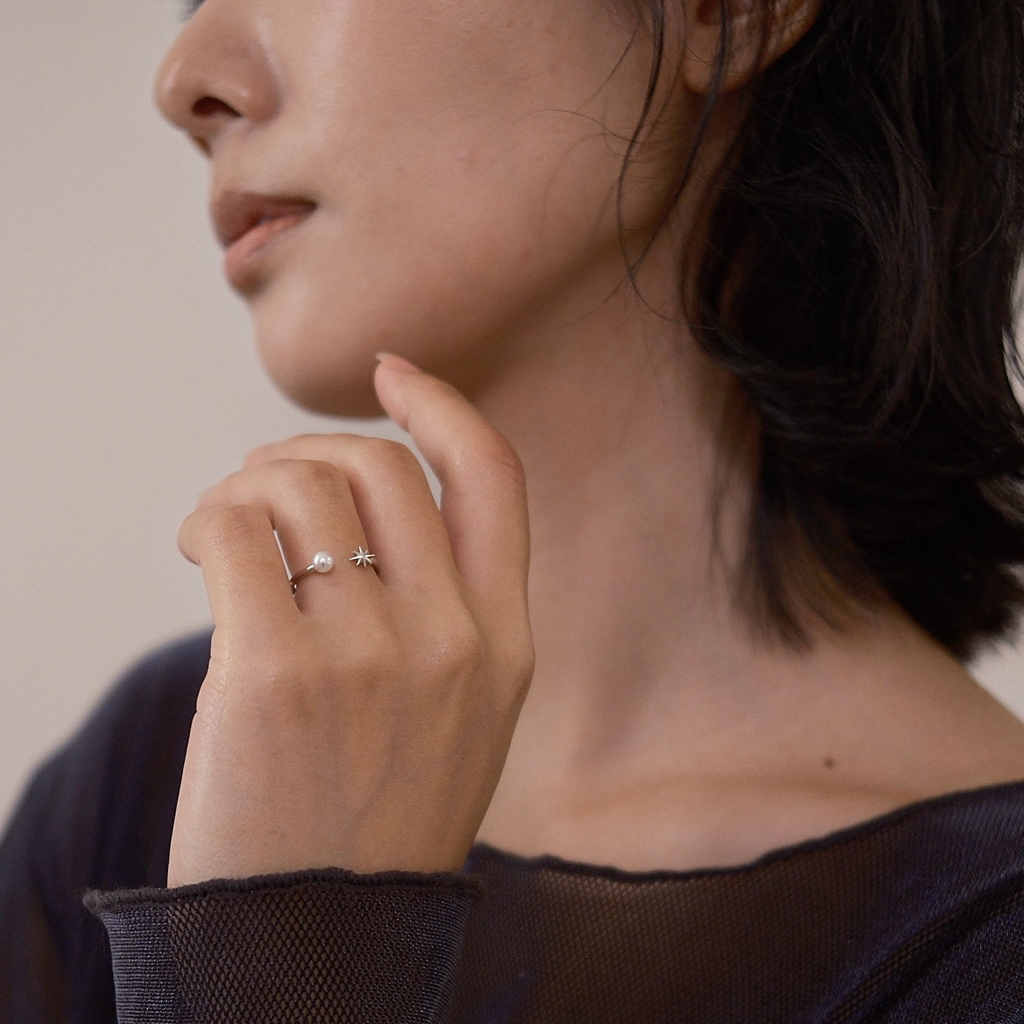 小ぶりな四芒星パールリングと八芒星パールリング。